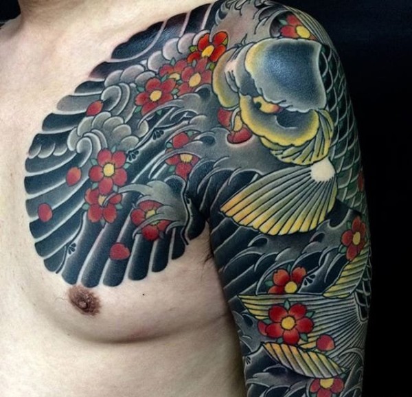一组活力年轻派的鲤鱼纹身图案