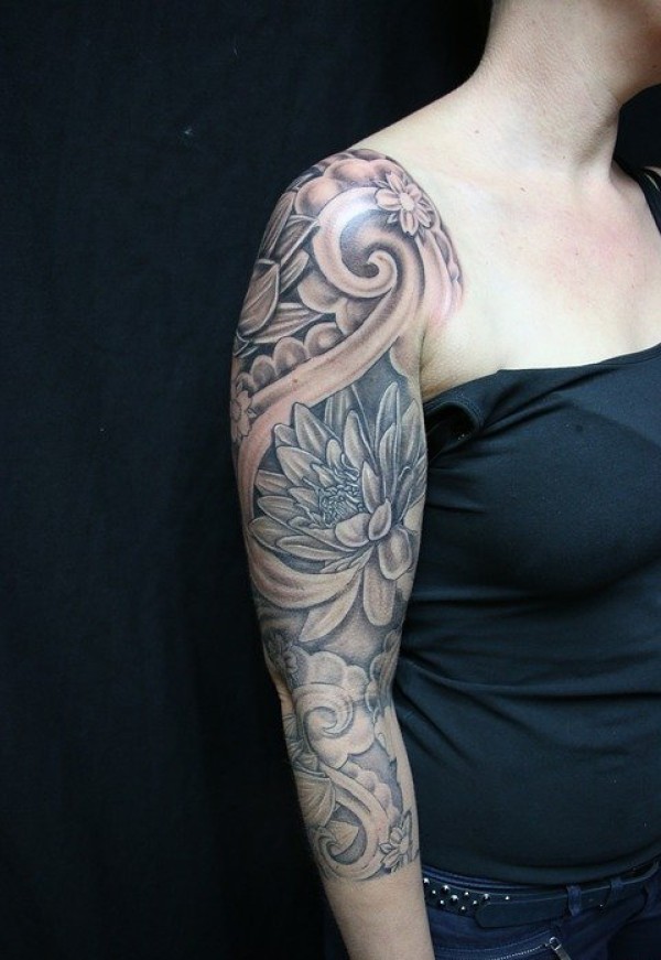 欧美花臂纹身_22张霸气黑灰欧美大黑花臂纹身图案作品图片