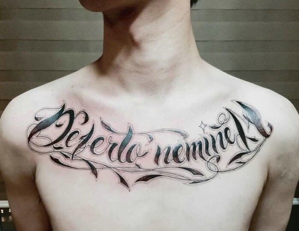 纹身图案胸部男 简洁大方的男生胸部纹身图案