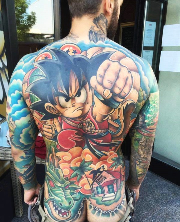色彩鲜艳的满背卡通纹身图案