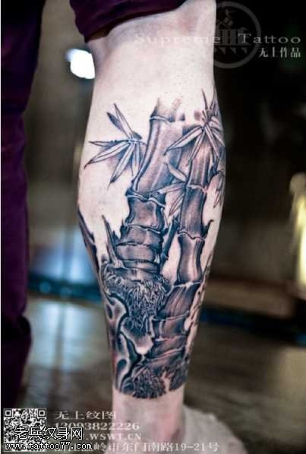 腿部竹纹身图案