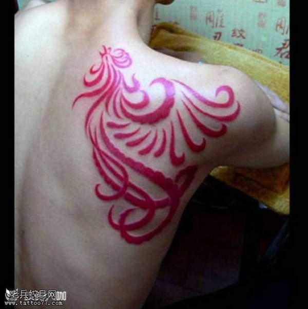 肩部红凤凰纹身图案