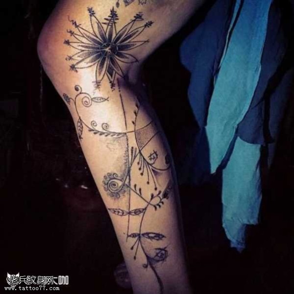 腿部花纹身图案