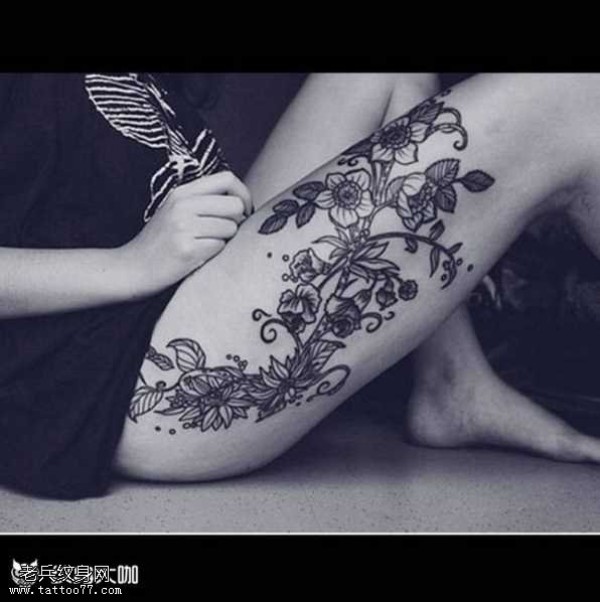 女孩腿部唯美刺青_腿部纹身图案大全_纹身图吧