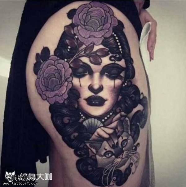 传统花腿纹身--18张传统风格的大花腿纹身图案作品