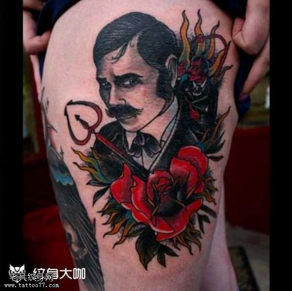 传统花腿纹身--18张传统风格的大花腿纹身图案作品