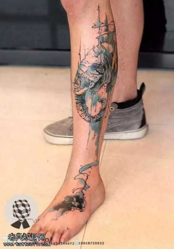 腿部鳌鱼纹身图案_腿部纹身图案大全_纹身图吧