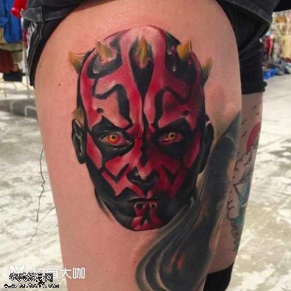 腿部红脸纹身图案