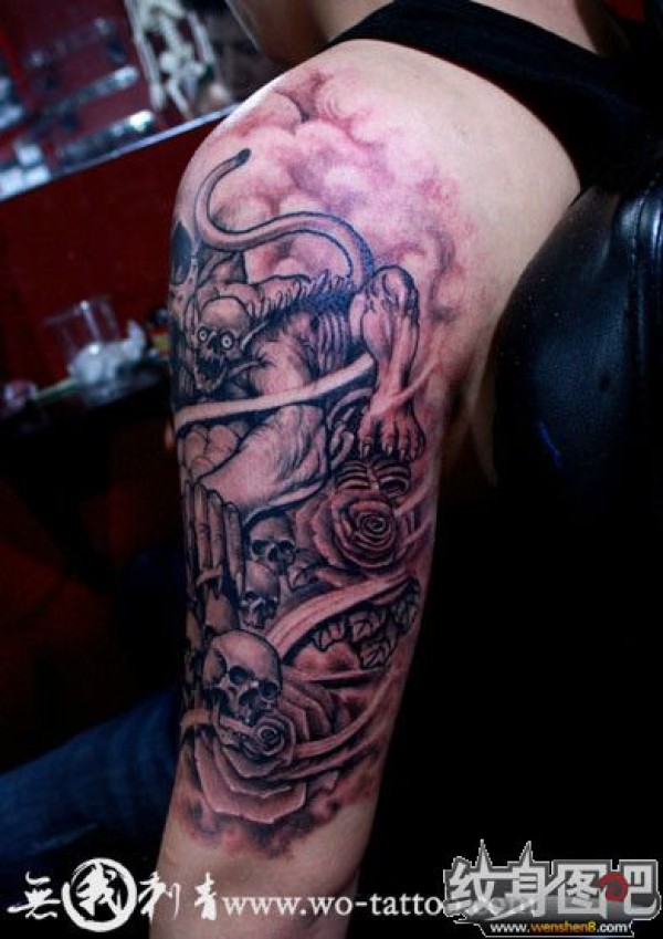 龙纹身手稿_一组老传统黑灰龙手稿纹身图案
