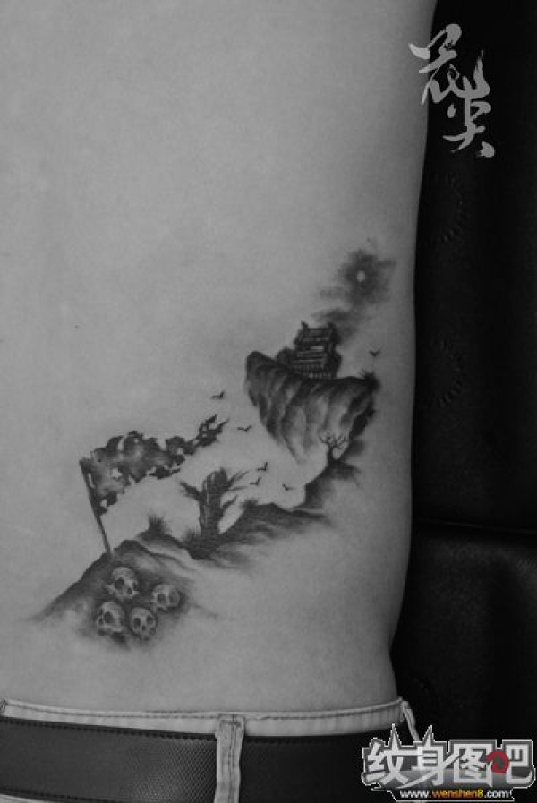 清新淡雅 北京newtattoo纹身店陈洁山水水墨纹身 (一)