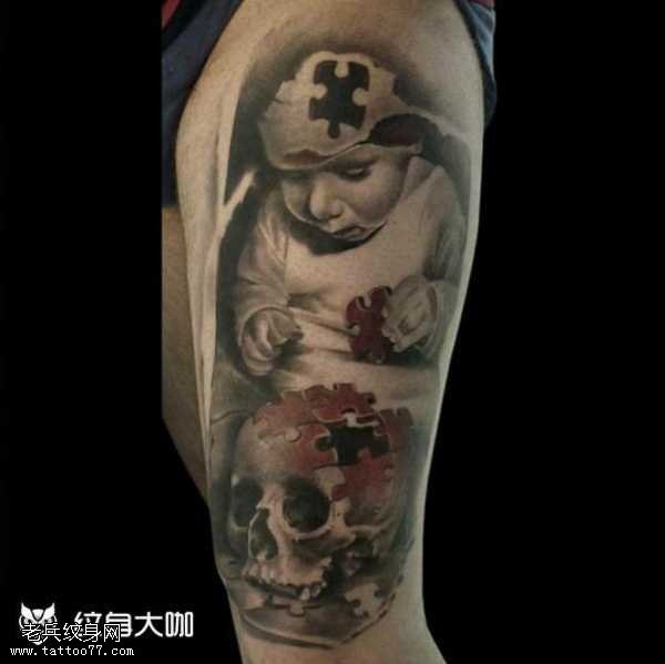 花腿纹身--一组大黑腿纹身图案作品欣赏