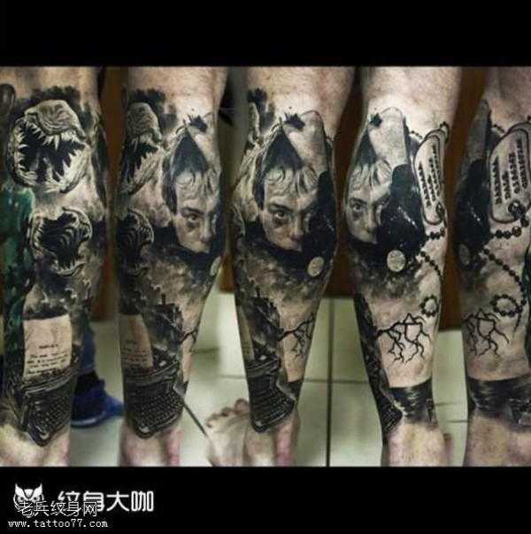 花腿纹身--一组大黑腿纹身图案作品欣赏