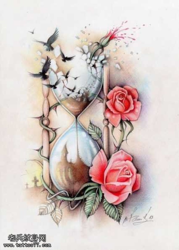 花沙漏纹身