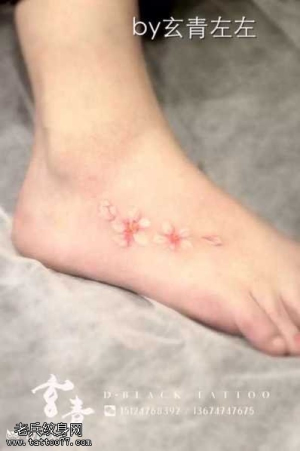 清新小桃花脚踝纹身_脚部纹身图案大全_纹身图吧