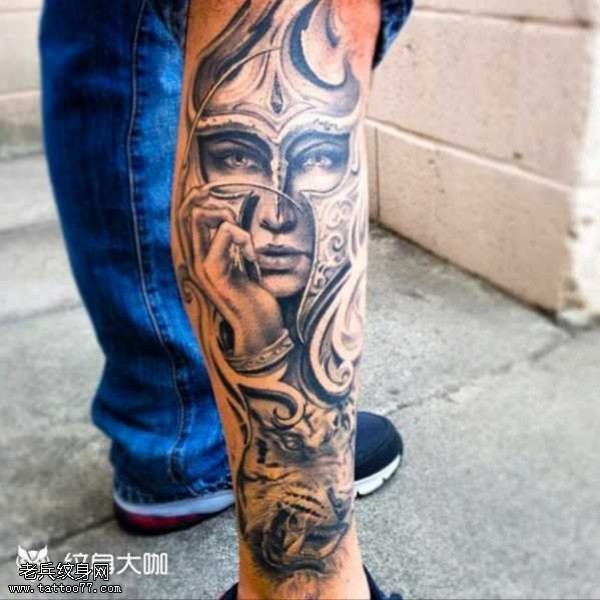 花腿纹身--一组大黑腿纹身图案作品欣赏