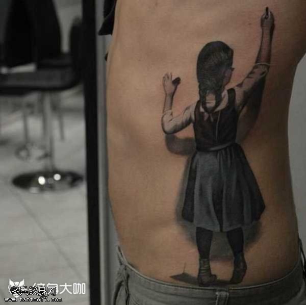 腰部小女孩纹身图案