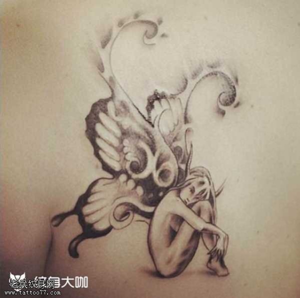 女生后腰纹身黑白灰风格抽象线条纹身图案