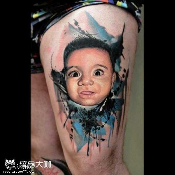 腿部小孩纹身图案