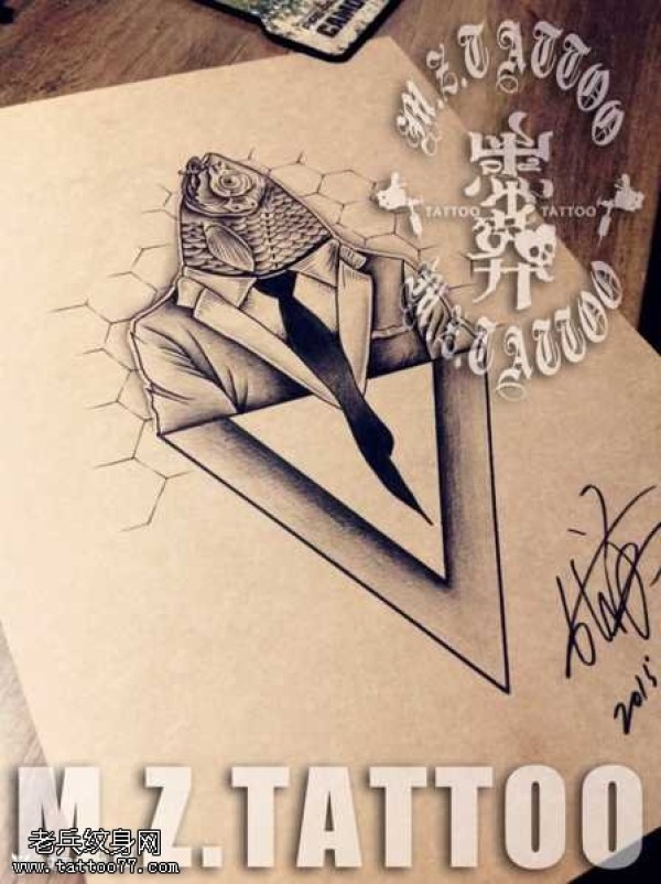 手稿鱼全视纹身图案