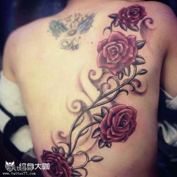 背部漂亮玫瑰纹身图案