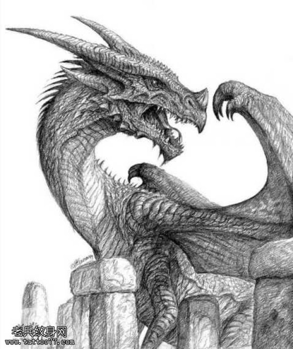 龙纹身手稿_一组老传统黑灰龙手稿纹身图案
