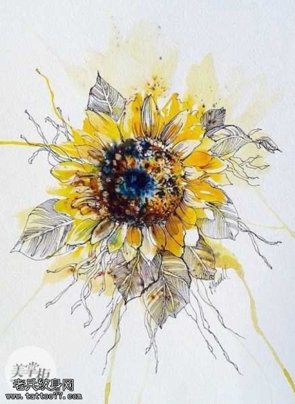手稿向日葵纹身图案