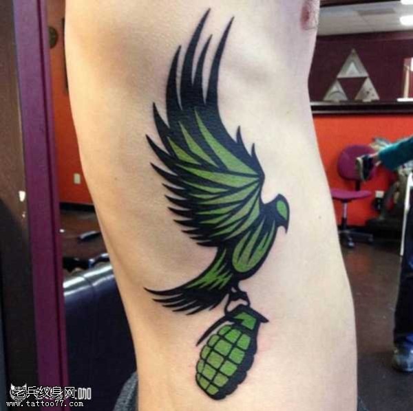 腰部手雷鹰纹身图案