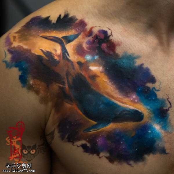 胸部星空鱼纹身图案