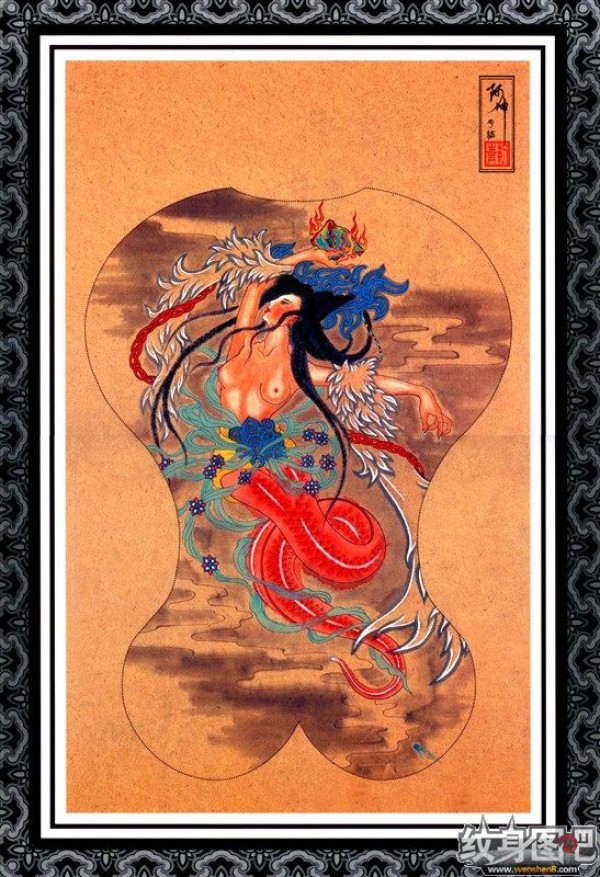 传统艺妓般若纹身图案手稿