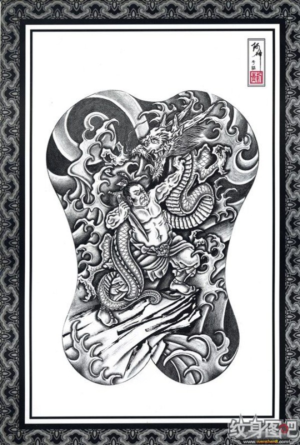 龙纹身手稿_一组老传统黑灰龙手稿纹身图案