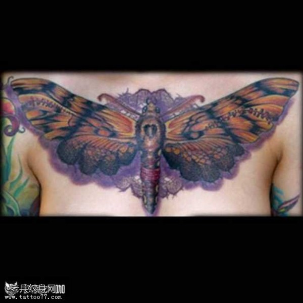 胸部飞蛾纹身图案