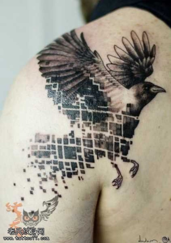 肩部渡鸦纹身图案