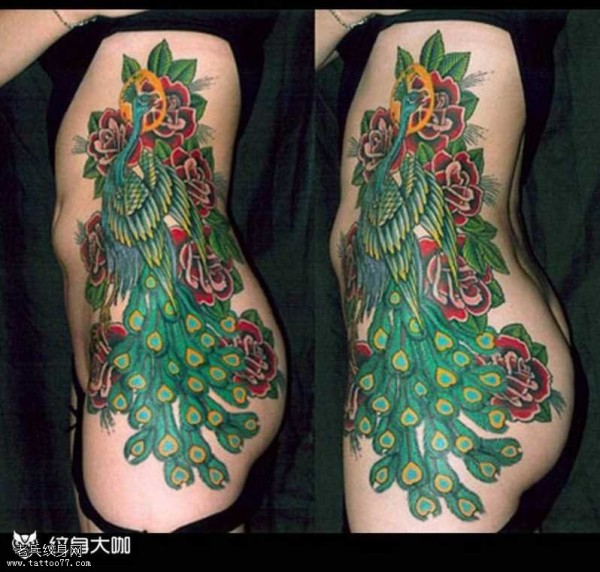 分享一款腰部时尚性感的蝶恋花纹身图案_腰部纹身图案大全_纹身图吧