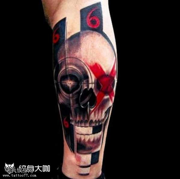 腿部个性骷髅纹身图案