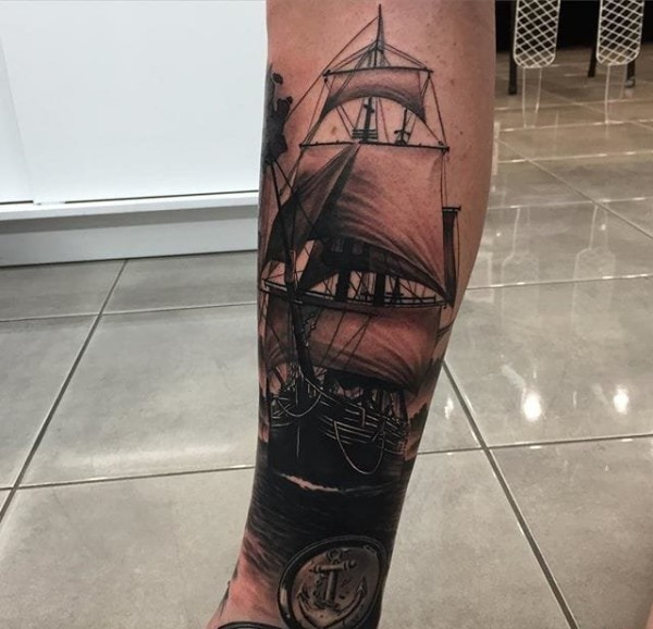 现实主义风格黑灰色纹身图案来自德鲁