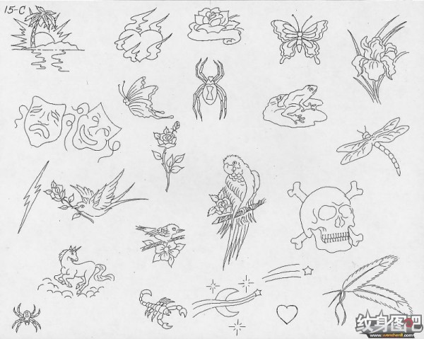 一组18张漂亮的欧美newschool动物纹身手稿图案