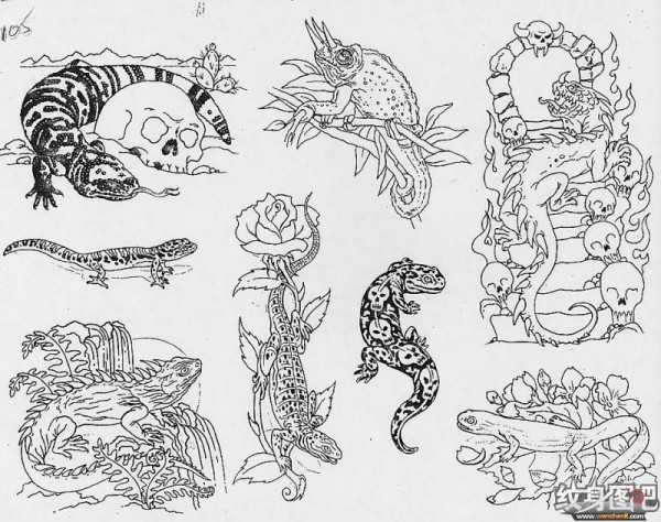 一组18张漂亮的欧美newschool动物纹身手稿图案