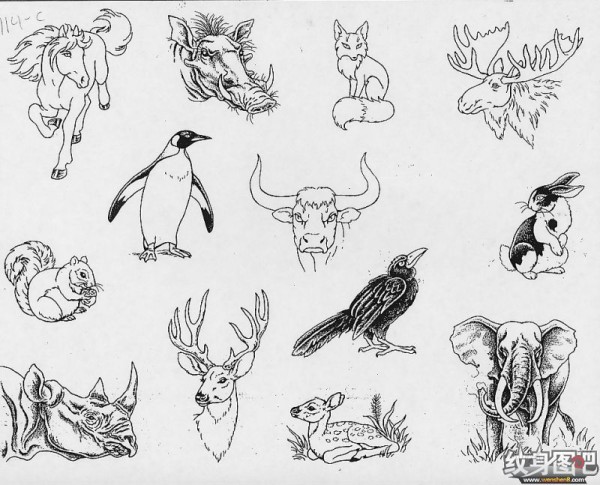 一组18张漂亮的欧美newschool动物纹身手稿图案