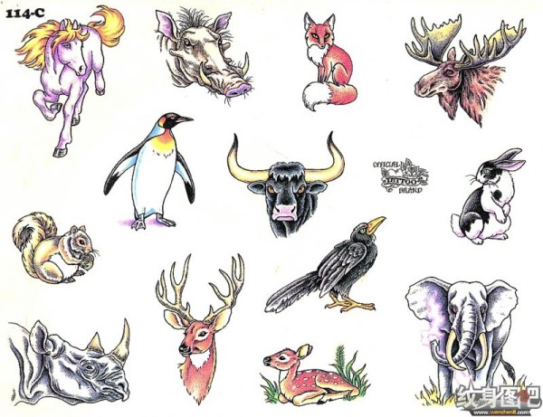一组18张漂亮的欧美newschool动物纹身手稿图案