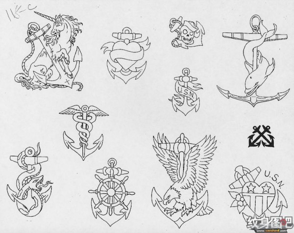 一组17张动漫海贼王路飞纹身手稿图案素材