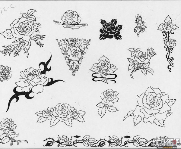 一组15张莲花纹身手稿图案素材