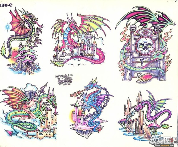 龙纹身手稿_一组老传统黑灰龙手稿纹身图案