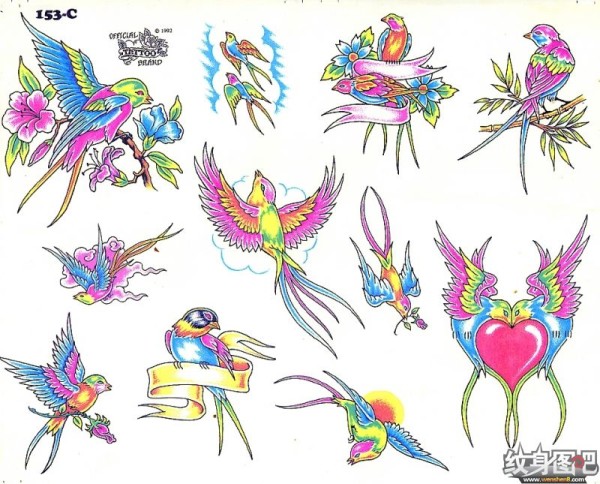 一组18张漂亮的欧美newschool动物纹身手稿图案