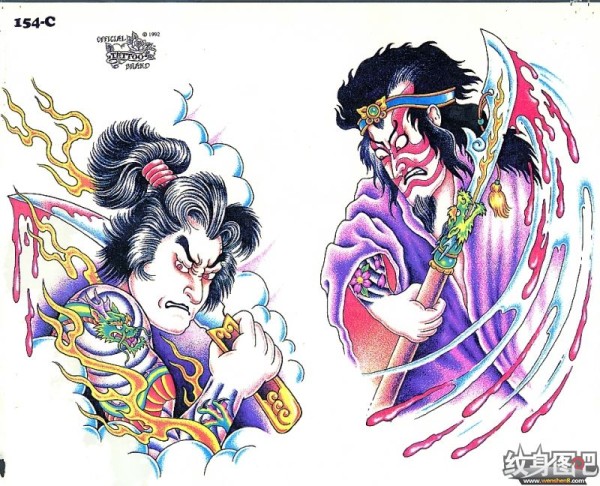 能面万媚纹身手稿_52张日式能剧面具纹身手稿图案素材欣赏