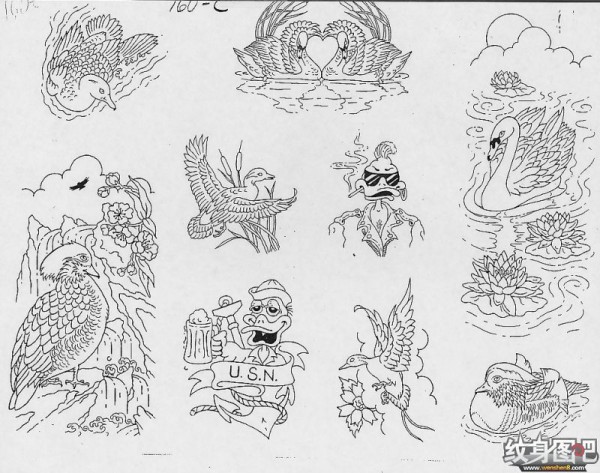 一组18张漂亮的欧美newschool动物纹身手稿图案