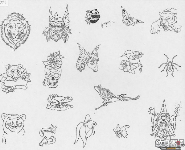 一组18张漂亮的欧美newschool动物纹身手稿图案