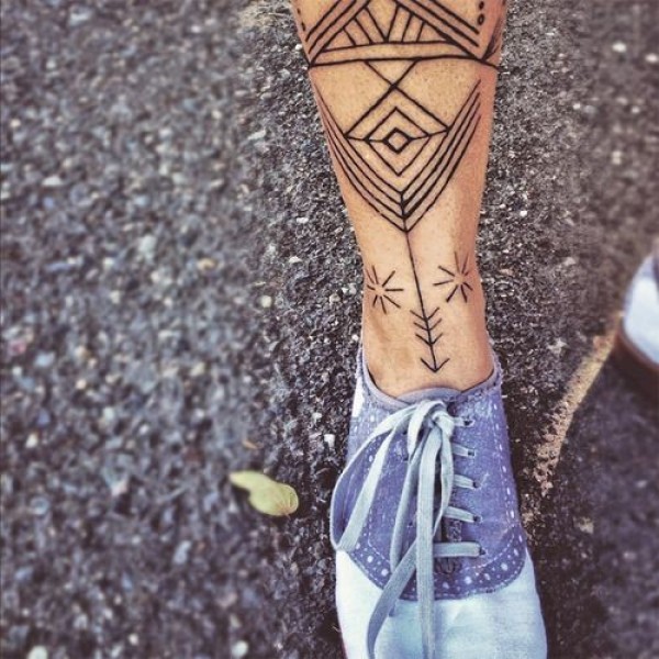 腿部时尚简单的图腾纹身