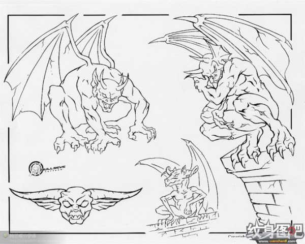 龙纹身手稿_一组老传统黑灰龙手稿纹身图案
