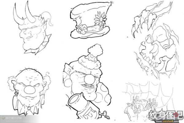 能面万媚纹身手稿_52张日式能剧面具纹身手稿图案素材欣赏