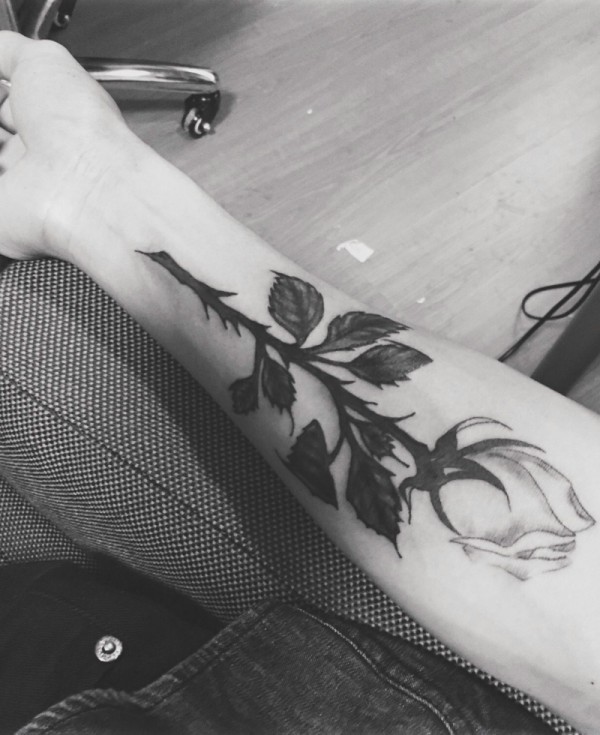 欧美玫瑰纹身 男生手臂上花朵纹身图片